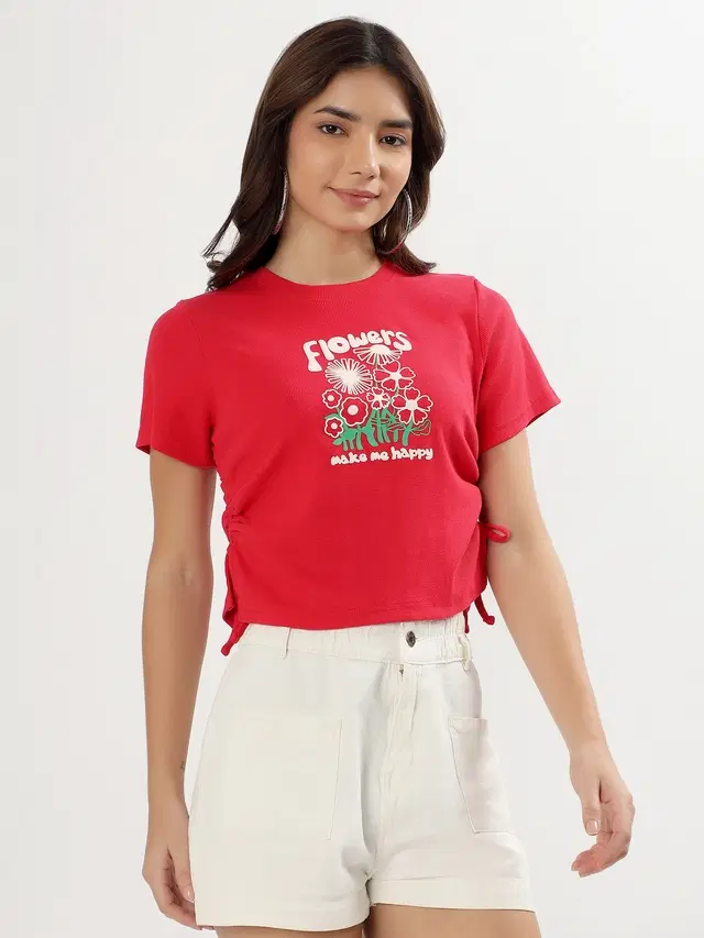 Round Neck Printed T-Shirt for Women, Red (XL) @ ₹149 - Buy Online at CityMall