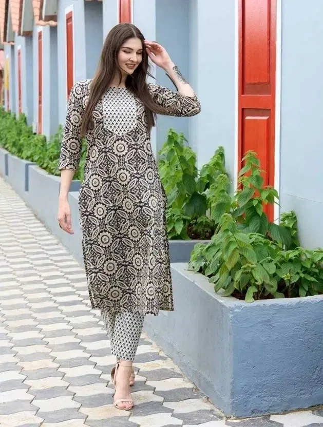 Cotton Printed Women's Kurta with Pant Set, Black (XXL) @ ₹289 - Buy Online at CityMall