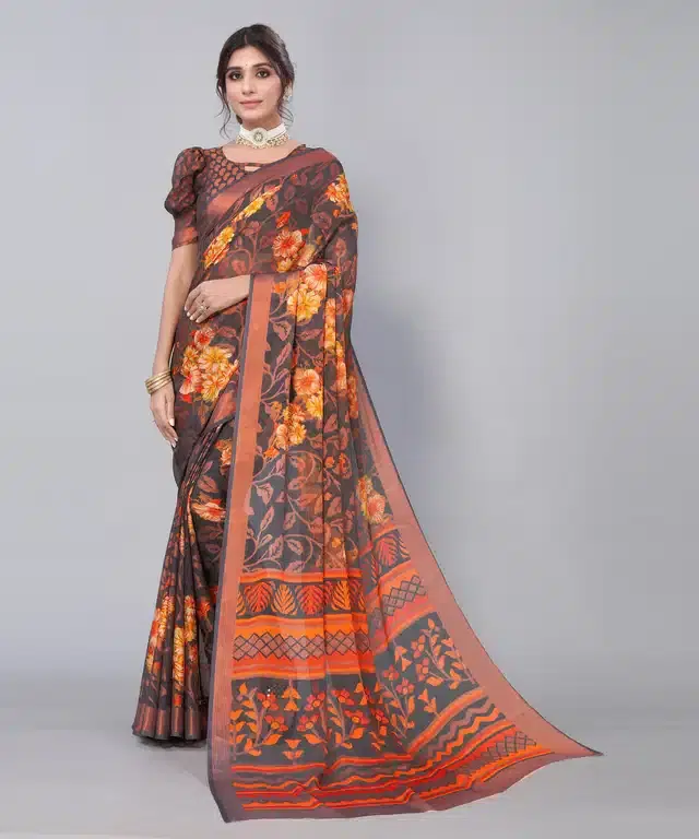 Women's Designer Chiffon Brasso Floral Printed Saree with Blouse Piece
