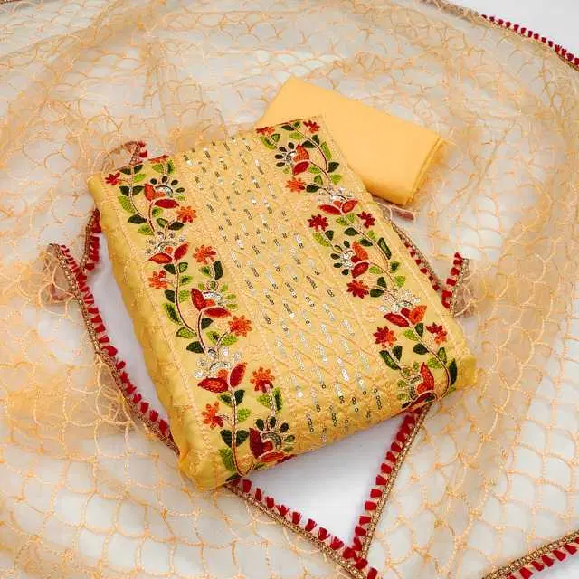 Women's Unstiched Dress Material Suit (Yellow) (VK-208) - Buy Online at CityMall