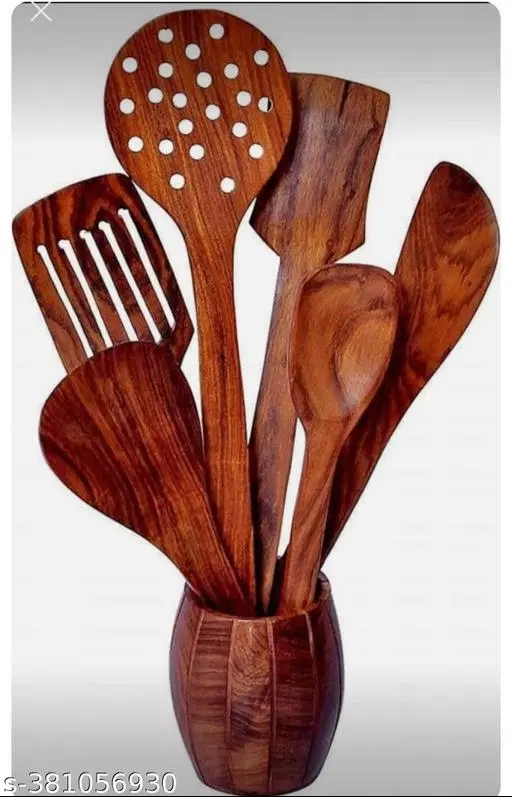 Wooden Kitchen Tools Set, Multicolor, Set of 6